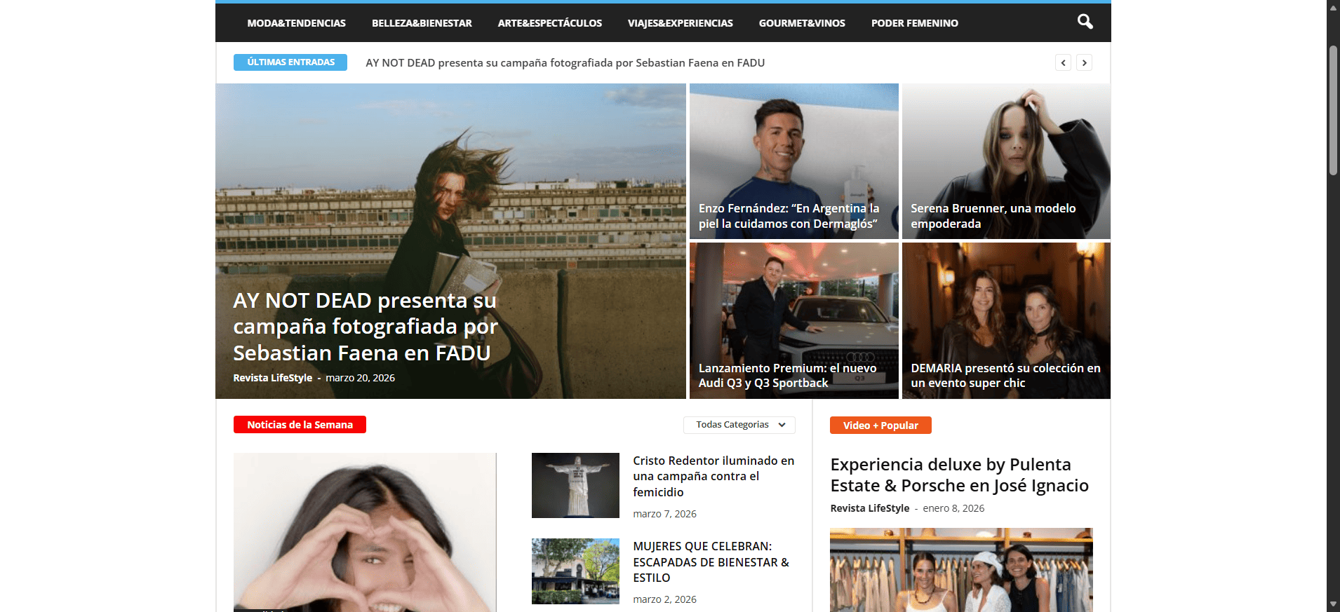 Sitio web desarrollado para una revista digital enfocada en contenidos editoriales, actualidad, tendencias y estilo de vida. La estructura prioriza lectura, organización por categorías, notas destacadas y una navegación clara para acompañar el consumo de contenido de forma dinámica y visual.